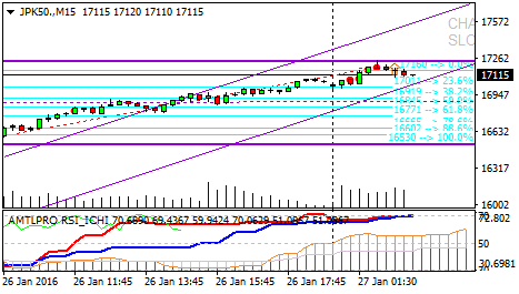 Japanese stocks in early trading on Wednesday (27/01) opened the rebound, observed rose 507.58 points, or 3.04 percent at 17,216.48. Strengthening Nikkei gains pushed Wall Street and expectations ahead of the meeting of the Fed and BOJ.