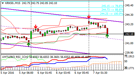 Comment: For intraday trade today suggest Sell at 243.70 stop and reversal during a break above the 244.00 level targets at the level of 242.00 and target of reversal at the level of 244.80.