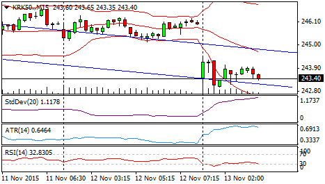 South Korea’s Kospi are in the trade rangebound after the Bank of Korea (BOK) kept interest rates unchanged on Thursday for the fifth consecutive month, in line with expectations, amid growing possibility rate of increase in the US in December.