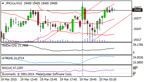 Technically, the index on the trading session today, Friday (20/03) is likely to strengthen, test positive trend. At the M15 chart bullish hammer formation provides opportunities for the index to move upside. However, the volume of which is likely to increase, as well as an early indication of bullish index. In addition, RSI, the M15 chart, are oversold, signaling upside.