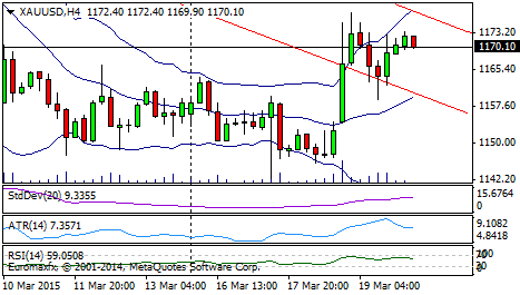 Technically, gold in today’s trading session on Friday (20/03) potentially bearish, tested negative trend back, but prone to reversal. RSI indicator tends to re-test support channel and towards the oversold area, but Bollinger Bands that began to widen, thus giving impetus to the gold to the upside.